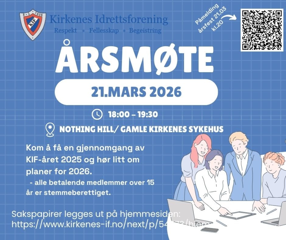 Vi oppfordrer alle medlemmer til å møte opp og være med på å ta beslutninger som påvirker fremtiden til Kirkenes Idrettsforening.